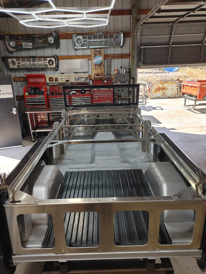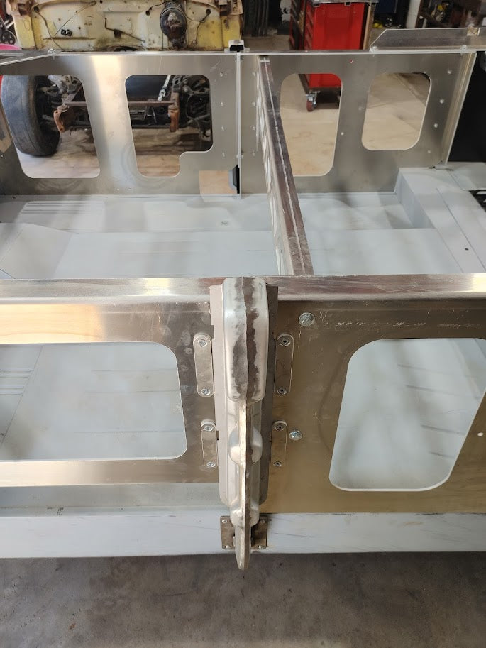Tailgate and pillar widths are all also accounted for using the crossbeams you can see in the photos. The entire jig bolts together using 5/16" hardware and 1/4" countersinks for the door stops. The front door jig panels have an extended flange that helps you set and locate your windshield cowl height, and there are stops that install on the cross-beam that further assist in placing the cowl and firewall correctly.